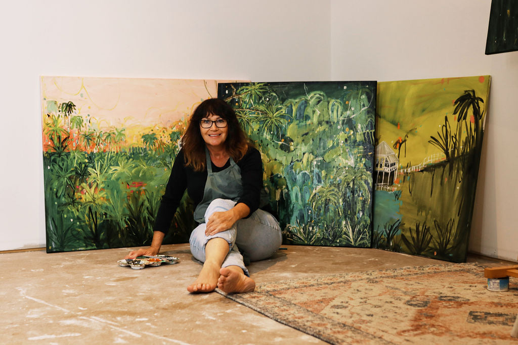 From her early days living in country Victoria and later moving to the lush surrounds of the Gold Coast Hinterland, Kim has cultivated a unique style of painting inspired from the landscapes she sees and feels around her. Her use of vibrant colours in an abstract manner are an expression of her soul. Her paintings are not just visually stunning, they invite viewers to share in her experiences. Each piece is a spectacular work of art.