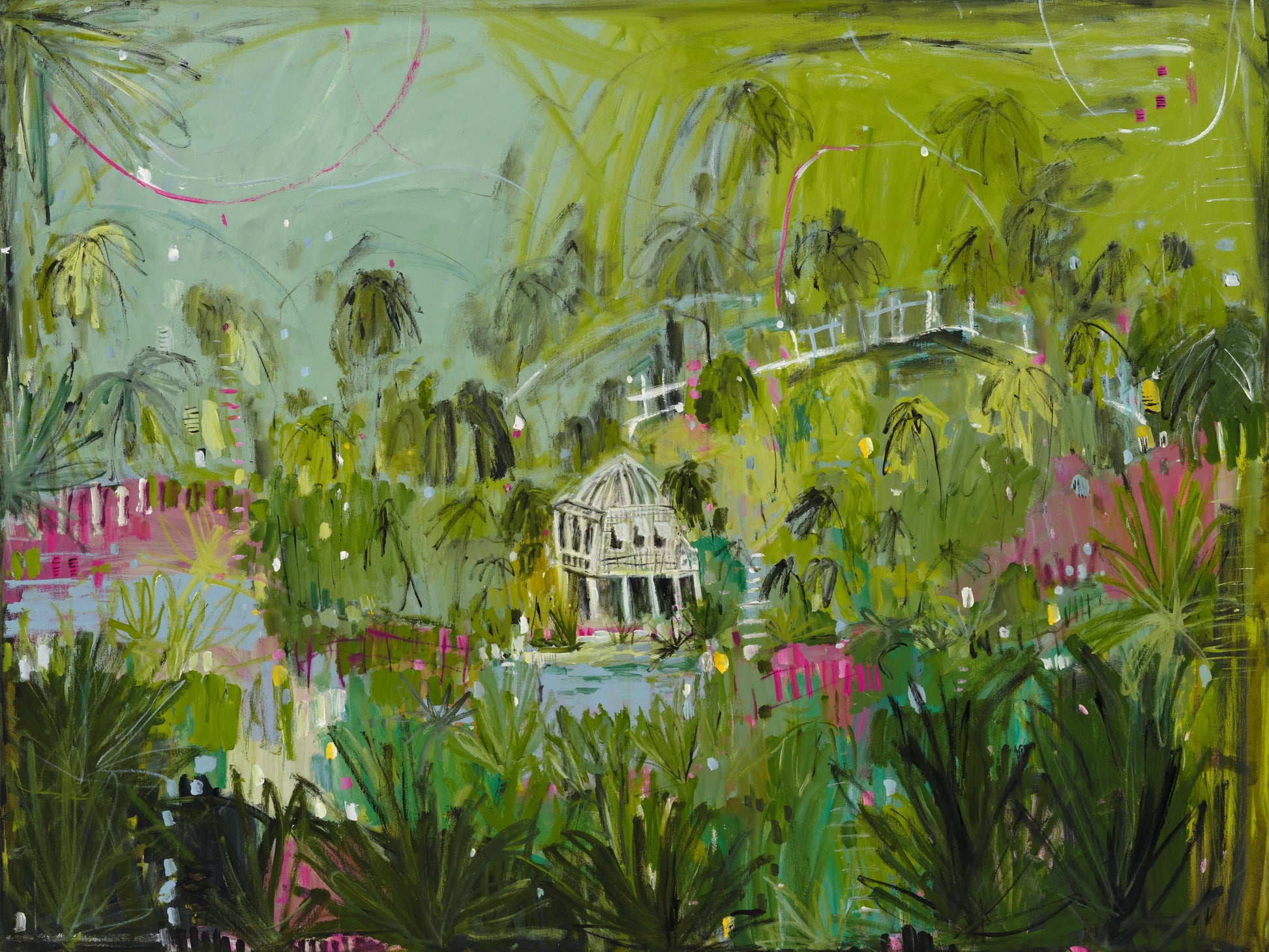 Perched on a gentle hill, a classic Queenslander house stands proudly, its timeless architecture a testament to the region's heritage. The interplay of light and shadow within the dense foliage, creating a vibrant tapestry of greens. This painting evokes a sense of tranquillity and connection to nature, celebrating the serene beauty of Queensland's landscapes.